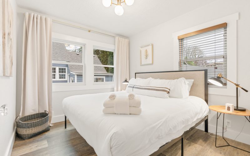 Step into our charming 2-bedroom Lake House, nestled near tranquil shores of Lacamas Lake. This retreat welcomes you with a living room that boasts large windows, allowing natural light to flood the space and easy access to lake just steps away.